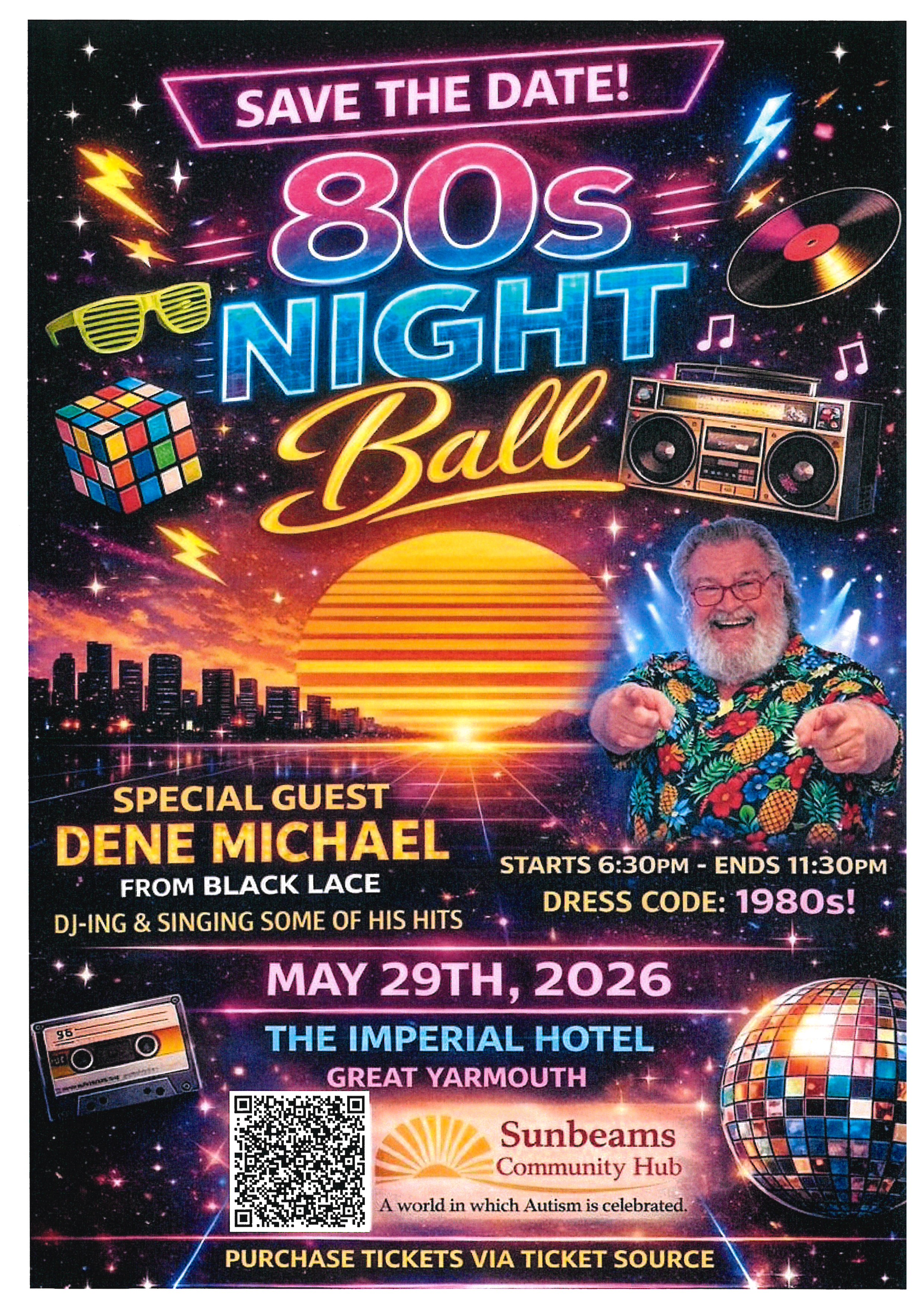 Our Annual May ball will be held on the 29th May at the Imperial Hotel Great Yarmouth. Tickets are available from Ticket source via this link We hold an annual ball every year on the last Friday of May to raise funds for the centre. The ticket includes a hot buffet and entertainment with the option to purchase raffle tickets. This year we have a special guest; keeping in line with the 80s theme we will be welcoming Dene Michael former member of the iconic 80s band Black Lace. Dene will be adding to the fun with two 30 minute sessions singing original and new songs